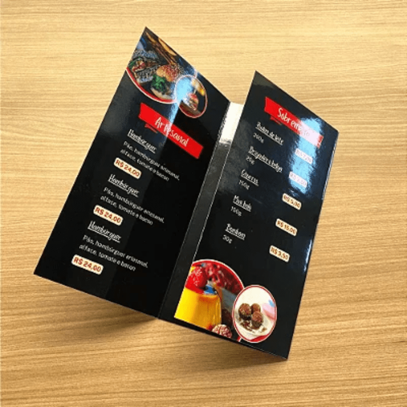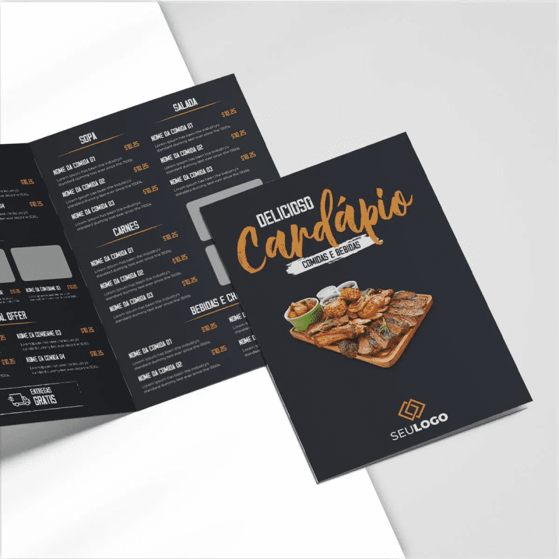 Cardápios são produtos indispensáveis para empresas do ramo alimentício. Como uma infinidade de papéis e acabamentos, esles estão prontos para encantar seus clientes!