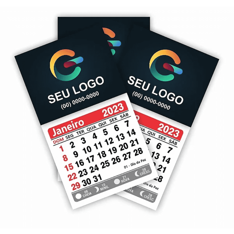 • Couchê 250g Corte Reto com Calendário Verniz UV Total Frente: 50×45